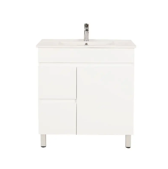 Bianca PVC 75cm Floor Standing Vanity Cabinet (LHD) Gloss White with Ceramic Top