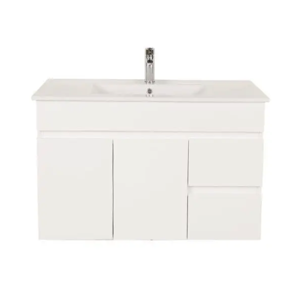 Bianca PVC 90cm Wall Hung Vanity Cabinet (RHD) Gloss White with Ceramic Top