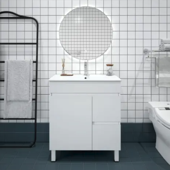 Bianca Slim PVC 75cm Floor Standing Vanity (RHD) Gloss White with Ceramic Top