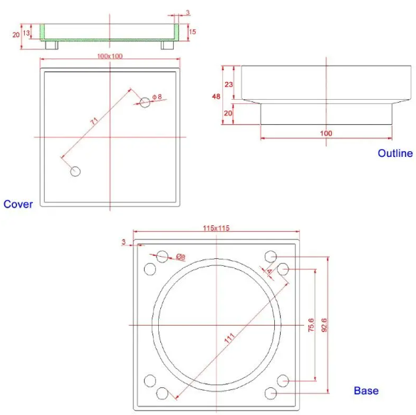 Dimensions: 115mm x 115mm x 23mm